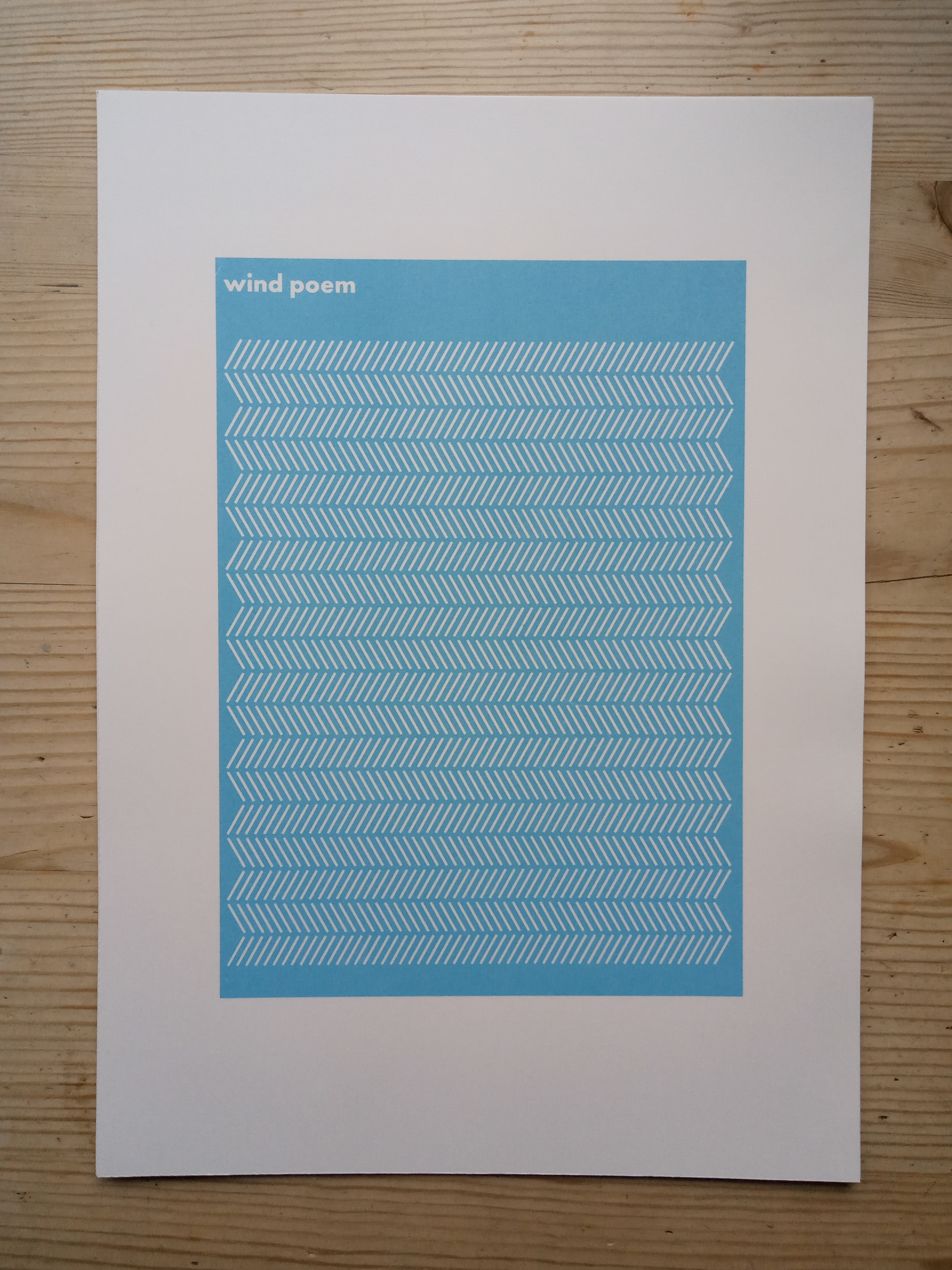 windpoem (day). Run of 20 in sky blue. £35 including postage. SOLD OUT